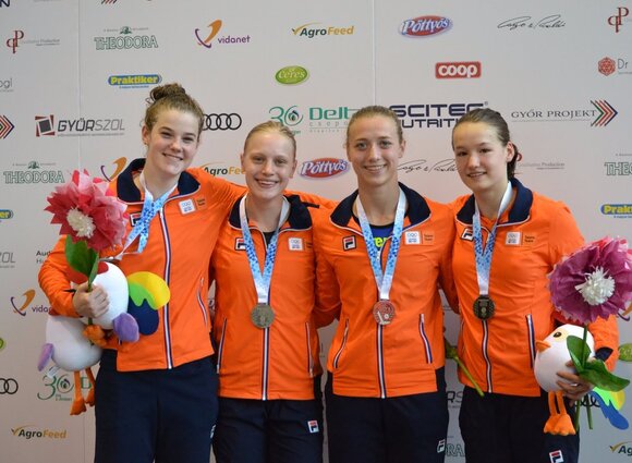 - Nienke Jonk (*21-01-2002) en Elise Tanis (*24-04-2002), beide leerlingen van Topsport Talentschool Sint-Joriscollege in Eindhoven en Imani de Jong (*28-05-2002), leerlinge van Topsport Talentschool Calandcollege in Amsterdam, behaalden bij het onderdeel estafettezwemmen, zilver