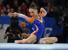 Vooral haar eerste serie, die uit een drievoudige schroef en salto voorwaarts bestond, was indrukwekkend, maar de uitvoering niet perfect. Een te diepe landing zorgde voor een pasje buiten de vloer. (Bron: NU sport)