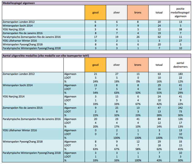 - t.o.v. de Zomerspelen is het aanal (oud-)LOOT-leerlingen in Team NL van 12% in Londen naar 30% in Rio gegroeid; bij de Winterspelen groeide het aantal (oud-)LOOT-leerlingen in Team NL van 29% in Sochi naar 45% in PyeongChang.